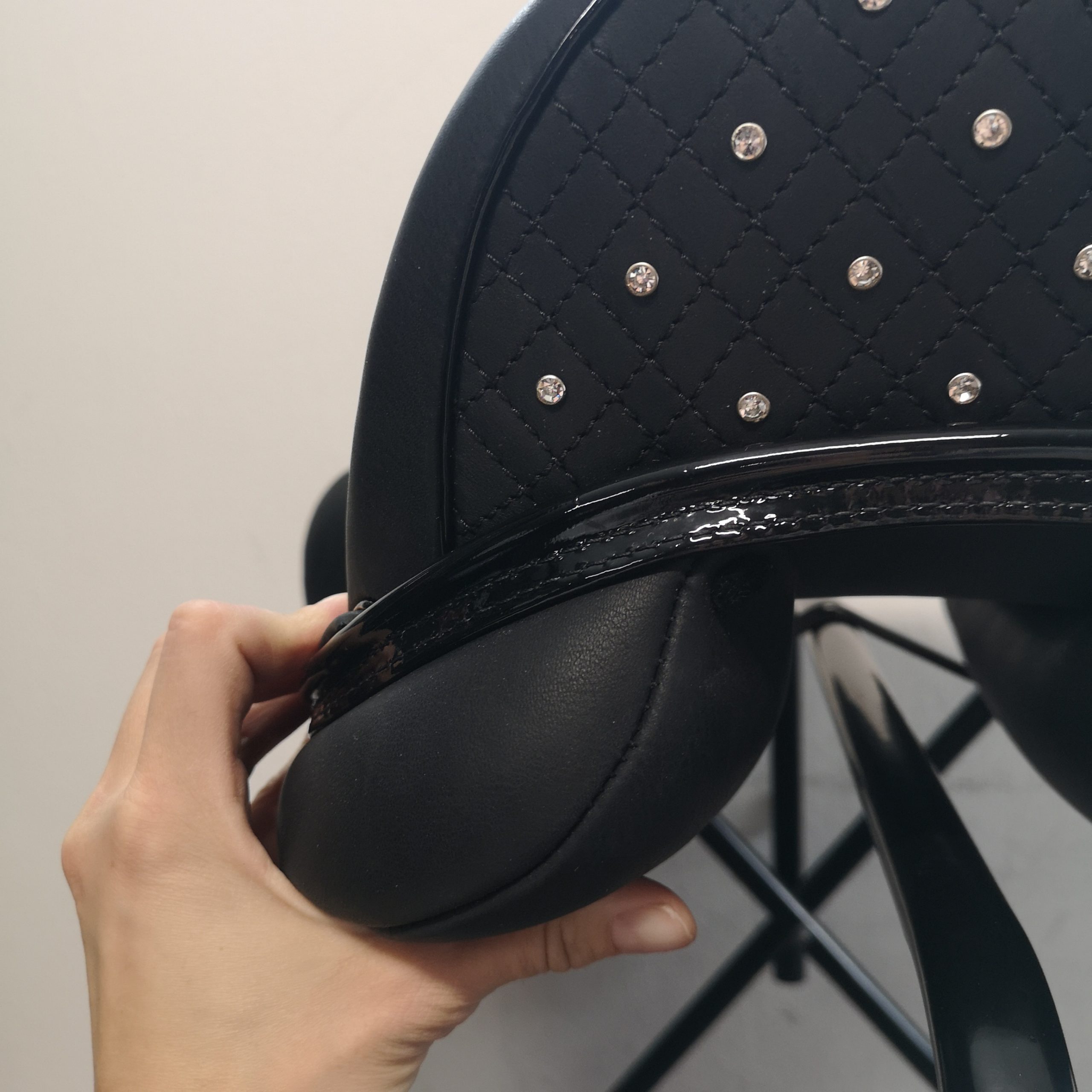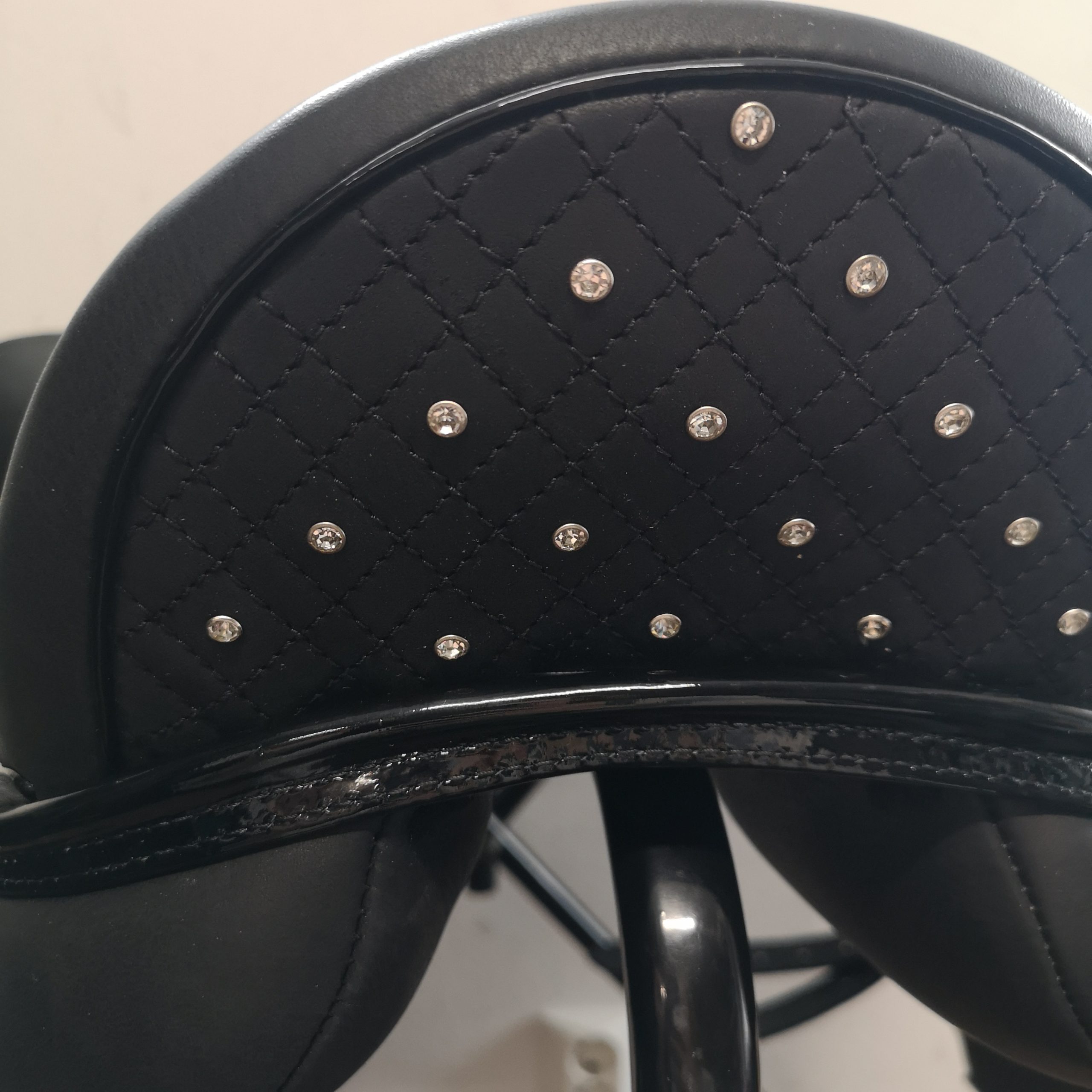 – Nahka, tikkaukset, koristereunukset, takakaari, kristallit