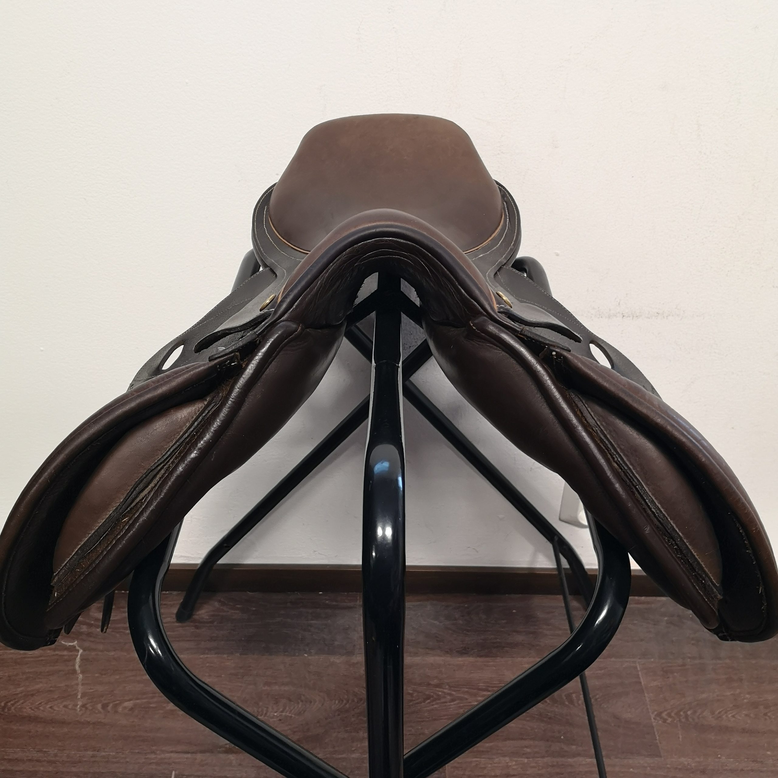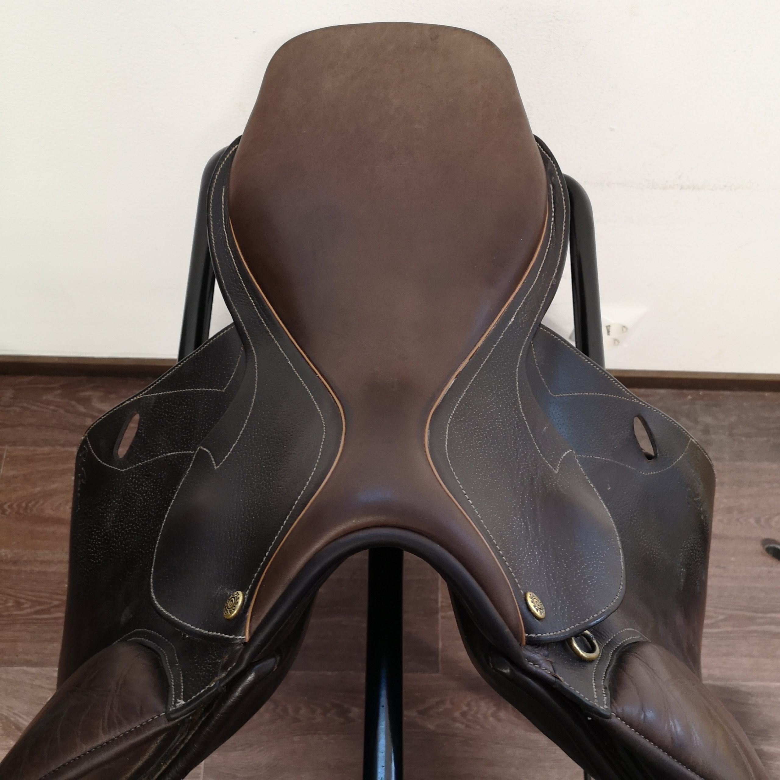 Istuin on erittäin pehmeä ja sen nahka nihkeää, pehmeää vasikannahkaa. Tässä mallissa pääset lähelle hevosta. Laadukas ponisatula pienelle ratsastajalle!