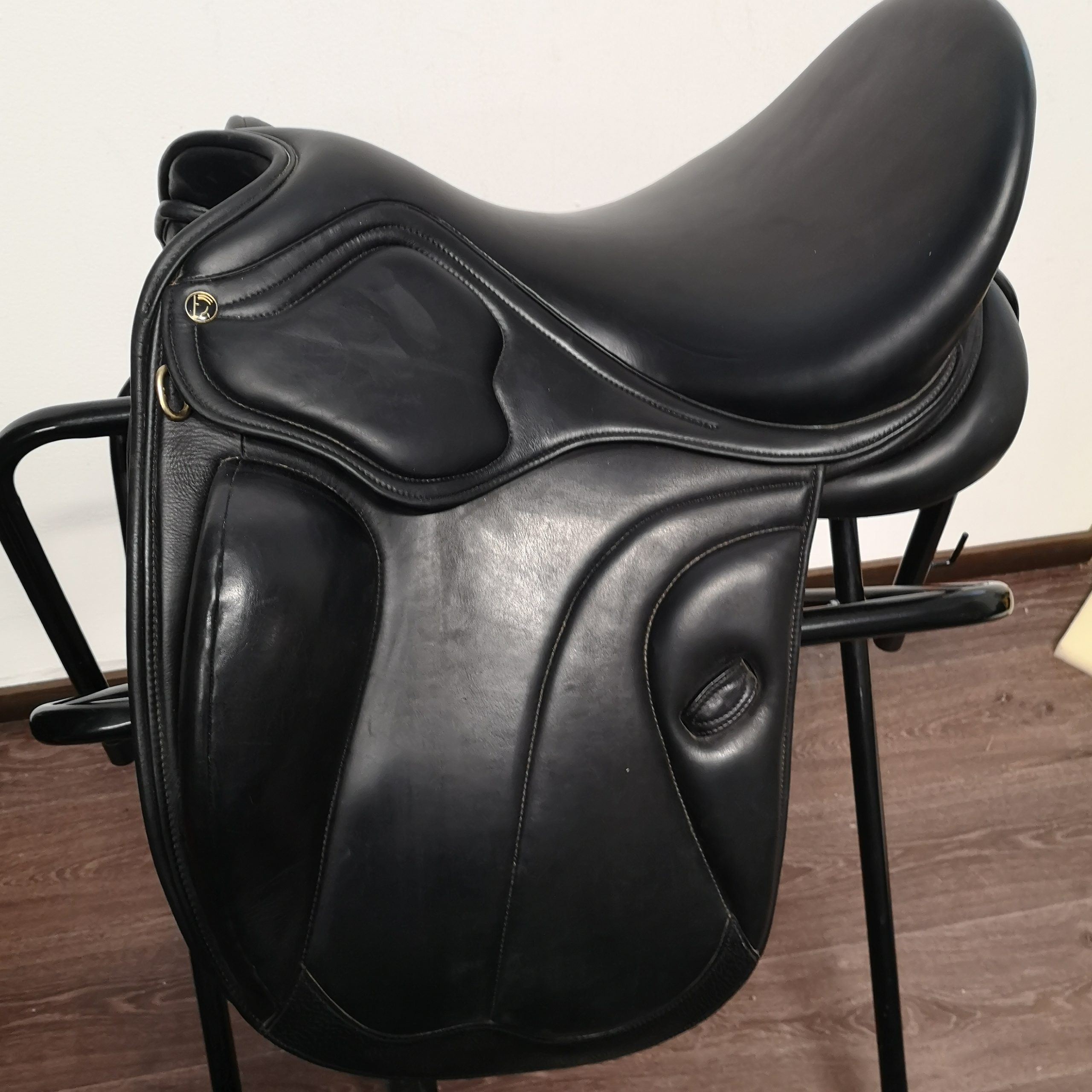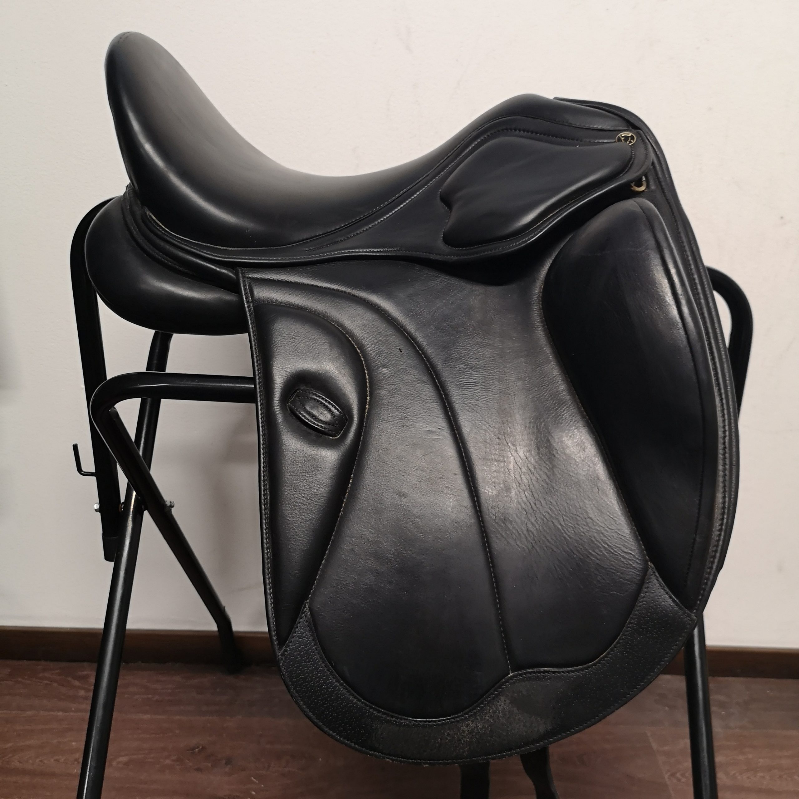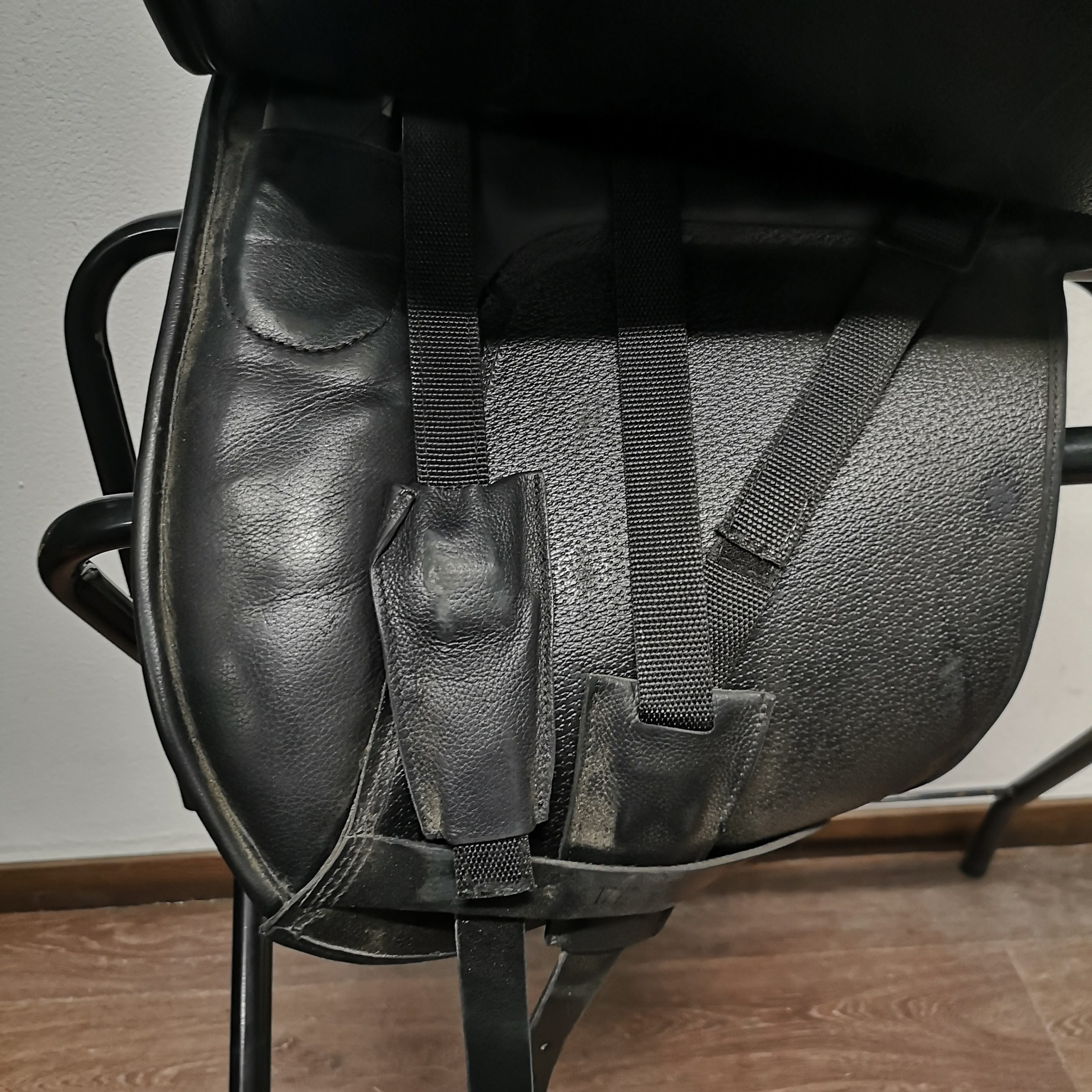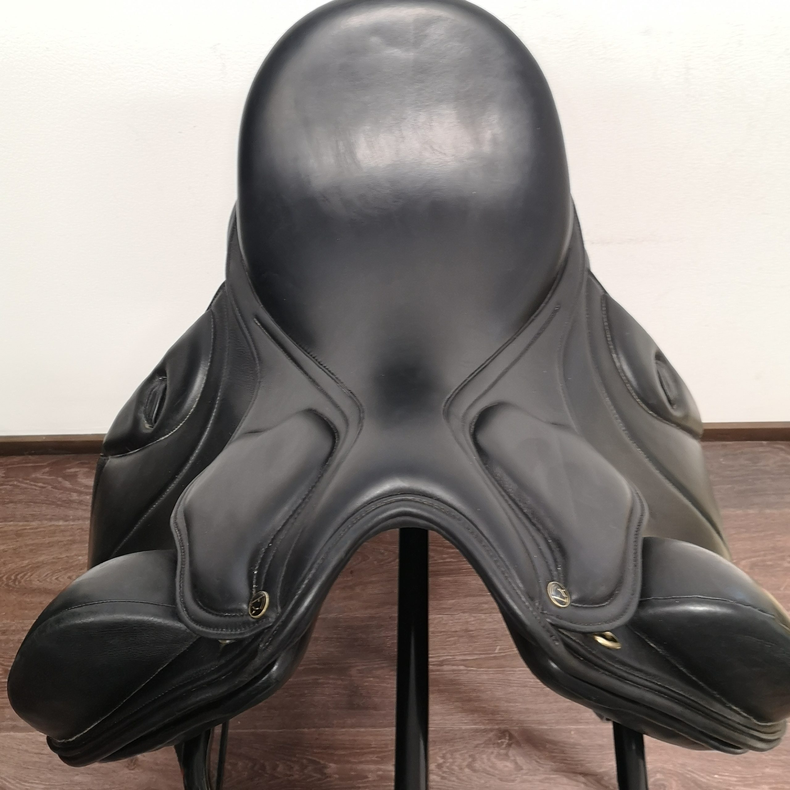 Pehmeää, pitävää nahkaa. Mukaan kaikki vaihtokaaret! Nyt sisällä medium. Istuinkoko merkitty 17,5″, mutta on pientä kokoa. Välityssatula alv 0%.